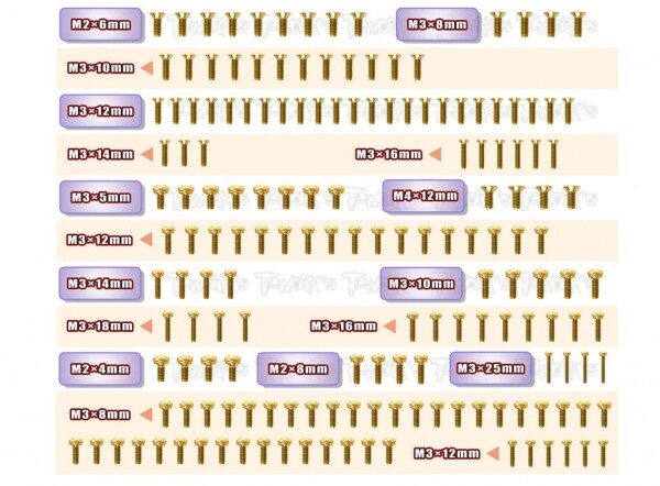 [GSSU-MBX8R-T] Gold Plated Steel Upper & Tranmission Screw set ( UFO Head ) 165pcs. ( For Mugen MBX8R )